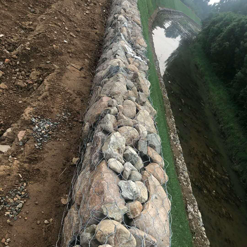 石笼网由金属网笼装填石料或土石复合体组成,具有渗水、透气、可沉降调整的弹性结构。其多孔骨架既能消散洪流能量、固护岸坡,又为植物根系提供安置空间和水分储存条件。随着时间推移,填料与周边土体发生颗粒互嵌与生物固结,植被覆盖逐步形成自然护坡,达到“工程—生态”协同稳定。